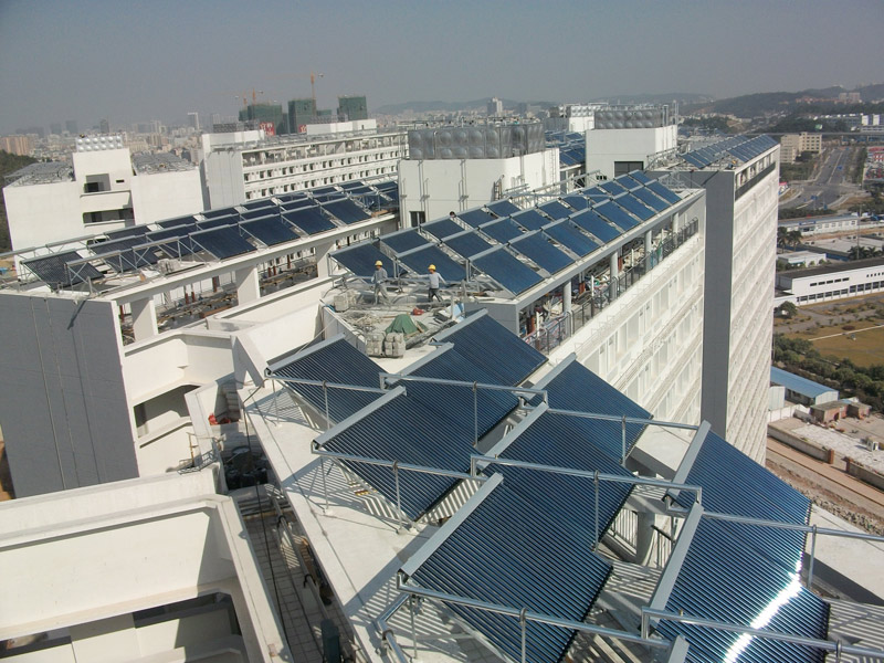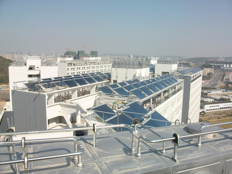 深圳信息職業技術學院與第26屆世界大學生夏季運動會大運村進行一體化建設,列入“第26屆世界大學生夏季運動會”主要場地。為體現“綠色大運”之宗旨,該學院采用了太陽能熱水器系統為學生提供生活熱水。該項目由cq9电子平台网站于2010年負責設計、制造并安裝,采用了太陽能集熱器368套及空氣源熱泵60臺,供應在校2.3萬師生的生活熱水需求。